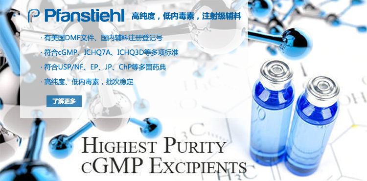 “熱烈祝賀Pfanstiehl的注射級甘氨酸Glycine(G-140)喜獲CDE登記號F20250000403, 這是Pfanstiehl產品獲得的第18個CDE登記號!”甘氨酸在醫藥輔料制劑中應用廣泛,, 可作為緩沖劑,增溶劑,穩定劑等,具有諸多優勢。Pfanstiehl秉承一貫高品質理念,為滿足全球生物制藥行業對于高品質甘氨酸的需求,隆重推出的注射級甘氨酸Glycine (G-140), 具有超高純度,超低內毒素,超低金屬殘留的特點,單獨檢測29種金屬離子,并且新增DNA,RNA,DNA酶,RNA酶和脂肪酶,亞硝酸鹽等多項質量指標的檢測,符合多國藥典規定(USP, EP, BP, JPE, ChP),可用于生物治療性藥物和疫苗的生產。產品信息:· 產品名稱:Glycine, High Purity, Low Endotoxin, Low Metals, USP, EP, BP, JPE, ChP (G-140)· 中文名稱:甘氨酸· 分子式:C2H5NO2· 分子量:75.07 g / mol· CAS號:56-40-6· 產品貨號:G-140產品特點: · 超高純度,超低內毒素,超低微生物含量,超低金屬雜質殘留· 質量指標新增DNA,RNA,DNA酶,RNA酶,脂肪酶和亞硝酸鹽檢測· 符合多國藥典:USP, EP, BP, JPE, ChP· 符合ICH Q3D標準· 符合GMP標準· 已獲DMF和CDE登記號 產品應用:· 緩沖劑· 穩定劑· 增溶劑如果您對Pfanstiehl注射級別Glycine G-140感興趣,歡迎聯系Pfanstiehl 中國區代理商北京西美杰科技有限公司獲得如下詳細的產品概況說明文件和測試樣品。Pfanstiehl Inc.最新產品系列如下,歡迎聯系北京西美杰科技有限公司獲取100g裝免費樣品。北京西美杰科技有限公司為Pfanstiehl中國代理,為客戶提供完善的技術支持與售后服務。歡迎撥打西美杰客服電話400-050-4006或者登陸網站www_xmjsci_com.ehndyo.mobi了解更多信息。 更多>西美杰介紹